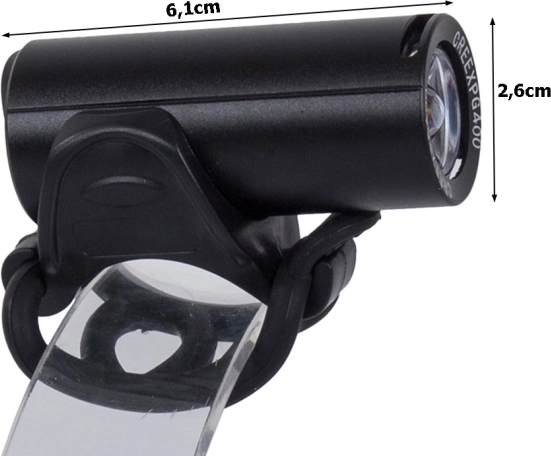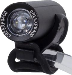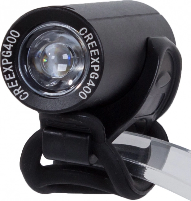 Sigurnija vožnja u mraku i kiši zahvaljujući kompaktnoj prednjoj lampi od zrakoplovnog aluminija s LED CREE XPG400 i svjetlosnim tokom od 350 lm. Nudi 4 načina rada (100 %, 75 %, 50 %, stroboskop), vodootpornost IPX6, USB punjenje i gumirani prekidač. Jednostavna montaža na upravljač pomoću priloženog držača.