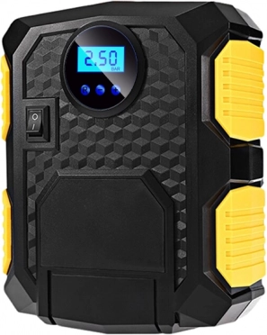 Kompaktan i snažan auto kompresor 12 V za brzo napuhavanje guma i drugih predmeta. Nudi maksimalni tlak 150 PSI/10 bar, protok 27 l/min, pregledan LCD zaslon s mogućnošću postavljanja ciljane vrijednosti tlaka i automatskog isključivanja nakon njenog postizanja. Praktično LED svjetlo olakšava rad u mraku, napajanje se vrši iz utičnice upaljača 12 V.