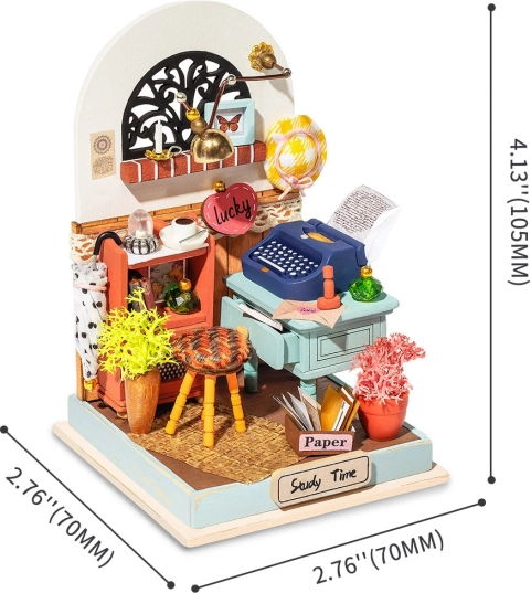 Uživajte u kreiranju vlastitog ugodnog prostora za pisanje dnevnika s ovom detaljnom minijaturom. Maketa donosi sate zabave i kreativnosti jer svaki dio morate sami obojiti i zalijepiti. Paket sadrži sve što je potrebno - od priloženog ljepila do četkice i boja. Kreirajte savršeni kutak za vašu sobu.