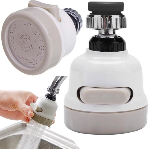 Dizajn izrađen od plastike konstruiran je tako da se lako pričvrsti na standardne kuhinjske slavine. Njegove trostupanjske mogućnosti raspršivanja nude vam varijabilnost između klasičnog protoka, širokog raspršivanja i nježnog prskanja, što olakšava razne zadatke u kuhinji poput pranja posuđa ili ispiranja hrane.