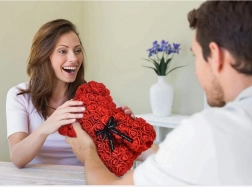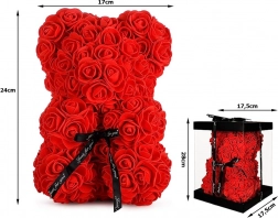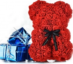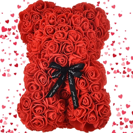 Crveni medvjedić ručno složen od pjenastih ružica osvaja na prvi pogled. Izdržljiv je, ugodan na dodir i predstavlja prekrasnu alternativu buketu koja traje bez brige o održavanju. Idealan kao dekoracija za spavaću sobu, dnevni boravak ili svečani stol.