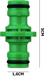 Ova univerzalna brza spojka dizajnirana je za brzo povezivanje dvaju vrtnih crijeva bez alata. Zeleno tijelo s profiliranom površinom osigurava siguran hvat, dok kvalitetni O-prsteni omogućuju čvrst i nepropustan spoj.