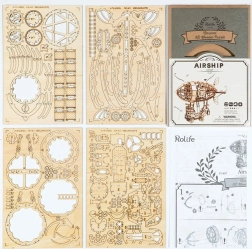 Ovaj 3D drveni puzzle zračni brod je izvrstan izbor za sve zaljubljenike modelarstva i ljubitelje steampunk dizajna. Izrađen od laserom rezane 2 mm lipove šperploče, ovaj model nudi ne samo zabavu prilikom sastavljanja, već i prekrasan ukras nakon završetka.