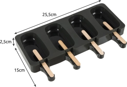 Četiri odvojene komore omogućuju pripremu različitih okusa odjednom, od jogurtnih do voćnih ili sorbeta. Zahvaljujući otvorima za štapiće na kraju kalupa, punjenje i postavljanje štapića je brzo i čisto. Paket sadrži 50 drvenih štapića, tako da možete početi odmah i dugo će potrajati.