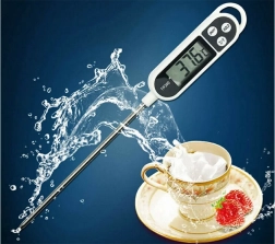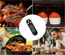 Uživajte u lakom mjerenju temperature s ovim snažnim digitalnim kuhinjskim termometrom sa sondom. Dizajniran je za precizno praćenje temperature mesa, vode i kolača pri pečenju i roštiljanju. Zahvaljujući čitljivom LCD zaslonu uvijek ćete imati jasan pregled aktualne temperature jela, s izborom prikaza u Celzijusima ili Fahrenheitima.