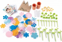 Stroj za izradu cvijeća sa 104 dodatka omogućuje kreativnu igru i bogatu opremu. Sadrži naljepnice za dekoraciju i jasne upute s inspiracijama. Cvjetove se može stvarati od materijalnih latica, koje su unaprijed perforirane za lakoću malog cvjećara.