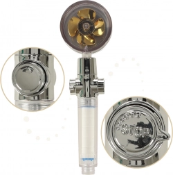 Tuš glava sa zlatnom turbinom je idealno rješenje za svaku modernu kupaonicu. Zahvaljujući velikom broju malih otvora i ugrađenoj turbini poboljšava pritisak vode i ujedno štedi potrošnju vode i troškove na računima. Unutarnji filter pomaže u rješavanju problema s tvrdom vodom, što je korisno i za vašu kosu i za kožu.