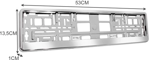 Sadržaj paketa: 2x okvir za registarske pločice s dimenzijama 53 x 13,5 x 1 cm i težinom 381 g svaki, ukupna težina paketa 538 g.