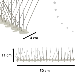 Segment duljine 50 cm i visine šiljaka 11 cm idealan je za montažu na prozorske daske, vijenace, ograde, oluke ili krovove. BazU se po potrebi može skratiti i prilagoditi. Montaža je brza – kroz pripremljene rupe ili pomoću ljepila.