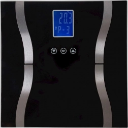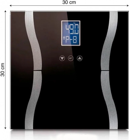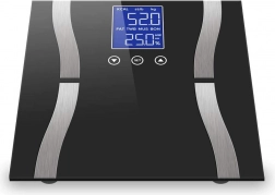 Elegantna analitička osobna vaga za kućnu kontrolu zdravlja mjeri težinu, tjelesnu masnoću, vodu, mišićnu i koštanu masu te BMR. Čvrsta ploča od kaljenog stakla 6 mm, veliki LCD zaslon, memorija za do 7 korisnika, AUTO OFF i nosivost do 180 kg. Jedinice kg/lb/st:lb i sigurne protuklizne nožice za svakodnevnu upotrebu.
