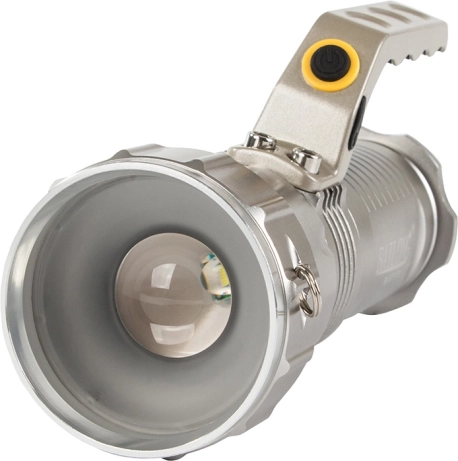 Svjetiljka uključuje lithium-ion baterije 18650 koje omogućuju dugotrajan i pouzdan rad. Na raspolaganju je i priključak za punjenje zaštićen gumenim poklopcem. Osim toga, lako se može pričvrstiti na remen.