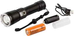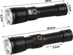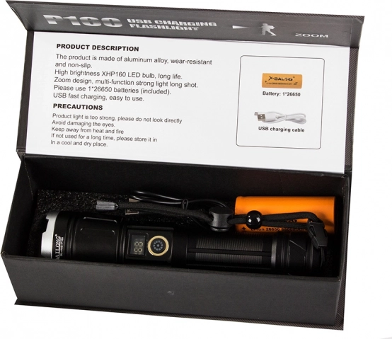 Otkrijte prednosti ove visokokvalitetne svjetiljke, izrađene od zrakoplovnog aluminija, koja nudi protukliznu površinu. Posjeduje funkciju power banke, što znači da može puniti vaše mobilne uređaje u nuždi. S moćnim zumom koji omogućuje uski snop s dometom do 1000 metara, idealan je alat za osvjetljavanje velikih prostora.