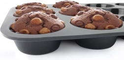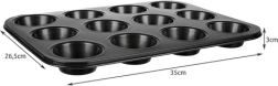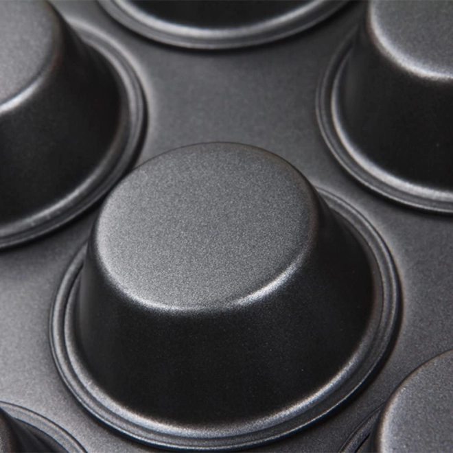 Kalup ima 12 rupa promjera 6,7 cm, što omogućava ravnomjerno zagrijavanje i lako vađenje peciva. Izrađen je od visokokvalitetnog teflona, koji je trajan i lako se čisti.