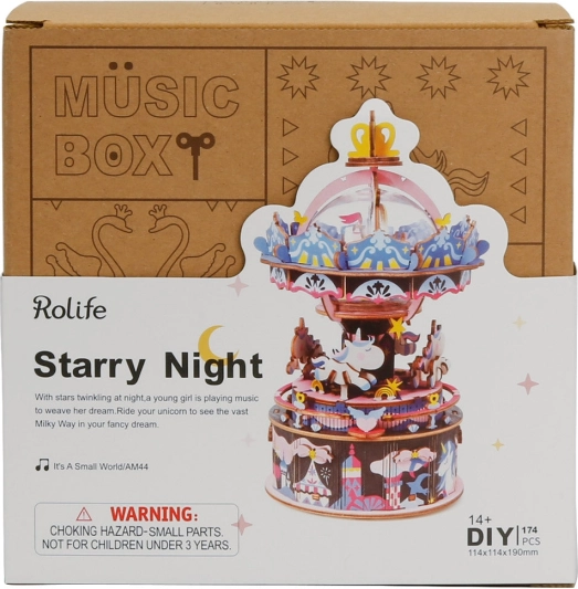 Robotime 3D puzzle Veseli vrtuljak je jedinstveni model vrtuljka, koji će razveseliti svakog ljubitelja glazbenih kutija. Sastavite i uživajte u poznatoj melodiji uz pokretne detalje.