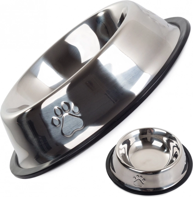 Ova moderna zdjela od nehrđajućeg čelika za pse i mačke nudi sjajno rješenje za posluživanje suhe i mokre hrane. Izrađena od izdržljivog nehrđajućeg čelika, osigurava dugu trajnost i higijenske uvjete za vašeg ljubimca. Protuklizna guma po cijeloj donjoj strani zdjele osigurava stabilnost na bilo kojoj površini.