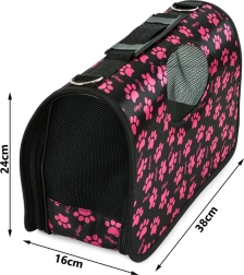 Ova prijenosna torba opremljena je udobnom ručkom za nošenje u ruci, kao i podesivim ramenim remenom. Posjeduje učinkovit ventilacijski sustav s dvije velike, prozračne mrežice i prozorčićem. Dva patentna zatvarača omogućuju brzo otvaranje ili zatvaranje torbe za lako smještanje vašeg ljubimca.