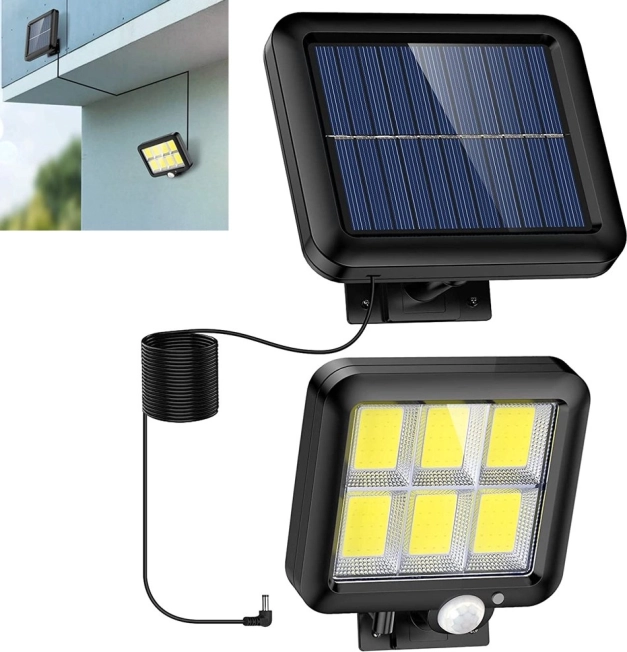 Solarnu panelnu lampu s 120 LED dioda nudi visoku svjetlosnu učinkovitost i uštedu energije zahvaljujući solarnom napajanju. S funkcijama kao što su detektor pokreta i otpornost na vremenske uvjete idealna je za vanjsku upotrebu.