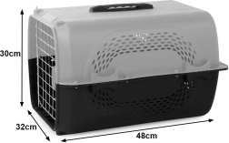 Prijenosnik za najmanje kućne ljubimce, kao što su psi, mačke, zečevi ili tvorovi, izrađen je od visokokvalitetne i izdržljive plastike, što jamči dugotrajan vijek trajanja. Veliki ventilacijski otvori osiguravaju maksimalnu udobnost tijekom prijevoza. Drška s gumiranom oblogom i mogućnost otvaranja vrata prema potrebi na lijevu ili desnu stranu pridonosi praktičnosti.