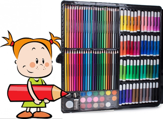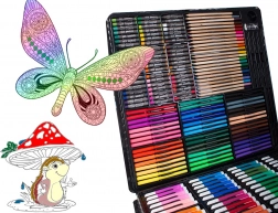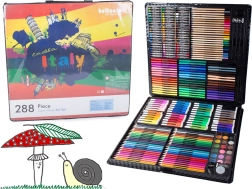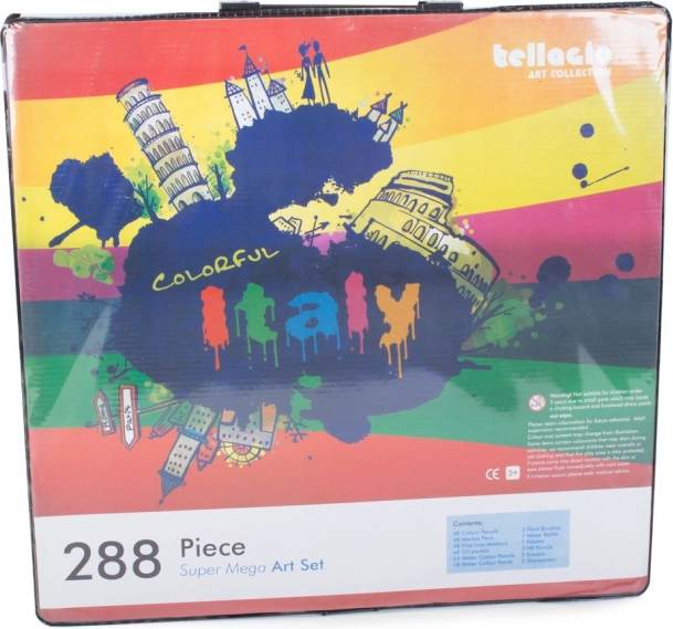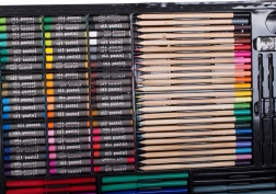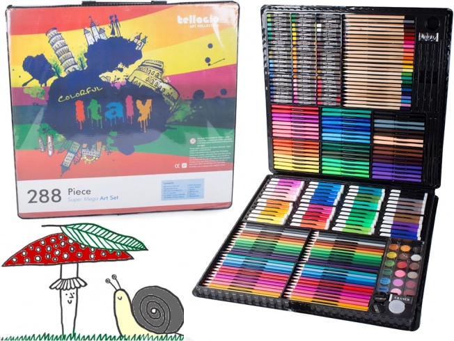 Sadrži sve potrebno za razvoj kreativnosti: olovke, flomastere, uljne pastele i akvarele – ukupno 288 elemenata.