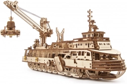 Mehanički model oceanografskog istraživačkog broda od UGEARS-a precizna je drvena slagalica koja će oduševiti zahtjevne stvaratelje i kolekcionare. Zahvaljujući 575 precizno izrezanih dijelova i visokoj razini težine uživat ćete u intenzivnom graditeljskom iskustvu s rezultatom koji doista oživljava – vidljivi dijelovi mehanizma omogućuju vam promatranje rada pogona u stvarnom vremenu.