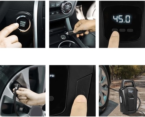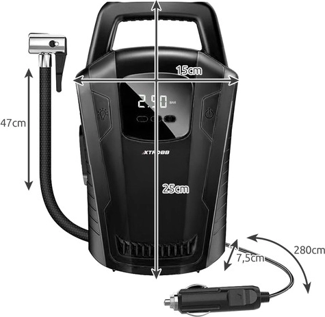 Održavajte ispravan tlak u gumama za veću sigurnost, dulji vijek trajanja i nižu potrošnju goriva. Ovaj prijenosni 12V kompresor XTROBB opremljen je elektroničkim manometrom s LCD‑om koji prikazuje tlak u PSI i BAR te funkcijom Auto‑Stop – nakon postizanja postavljene vrijednosti automatski se isključuje. Integrirana LED svjetiljka olakšava rad u sumrak i noću.