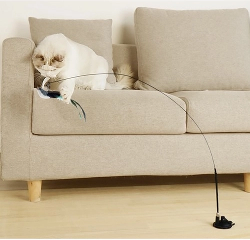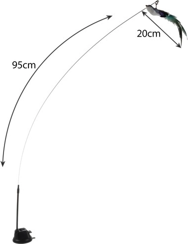 Snažna vakuumska čaša omogućuje sigurno pričvršćivanje igračke na glatke površine poput podova, prozora ili zidova, pružajući bezbroj mogućnosti za raznoliku igru. Štap se također može izvaditi s postolja i koristiti za interaktivnu igru s mačkom.