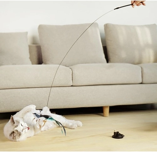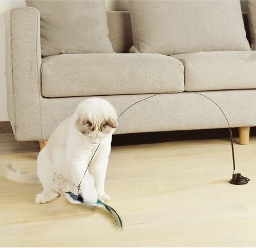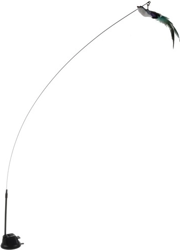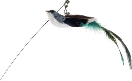 Dugi elastični štap s atraktivnim elementima na kraju privlači pažnju mačke i potiče je na skakanje i hvatanje. Ptić ukrašen dugim perjem i nježnim zvončićem dodatno pojačava privlačnost.