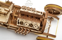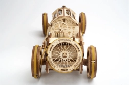 Uronite u eru rađanja automobilskog sporta s preciznim modelom UGEARS U9 Grand Prix. Set od kvalitetne šperploče nudi autentičan doživljaj gradnje i funkcije: upravljanje, rikverc, ler i realno pokretne komponente V8 motora. Model je osmišljen tako da nakon navijanja opružnog mehanizma samostalno vozi i razveseli svakog ljubitelja tehnike.