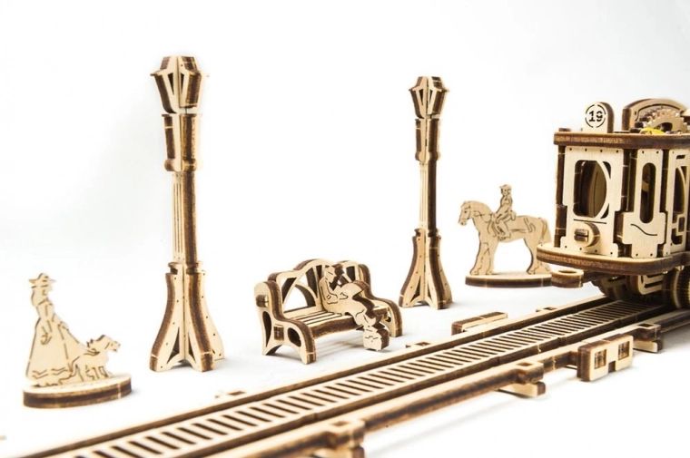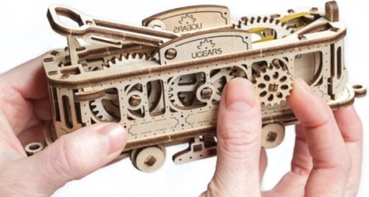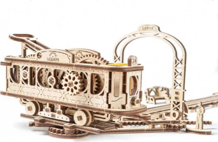 Slagalica UGEARS iz serije Mechanical Town vodi vas u svijet promišljene mehanike, a precizni laserski izrezi pretvaraju se u realističnu drvenu tramvajsku liniju. Model nudi otvorenu konstrukciju zahvaljujući kojoj možete promatrati rad zupčanika i pogon na navijanje – tramvaj doista vozi po zakrivljenoj pruzi.
