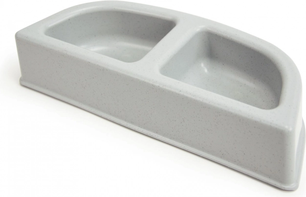 Dvostruka zdjelica Loboo za transportni kavez Bubble Urban izrađena je od jedinstvenog materijala koji kombinira plastiku i ljuske badema. To osigurava ne samo veću otpornost, već i prijateljstvo prema okolišu.