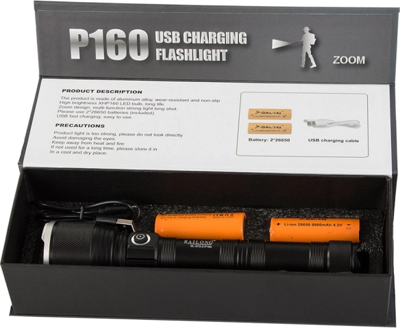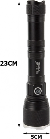 Ova svjetiljka renomiranog brenda Bailong idealna je za uniformirane službe, vojsku, lovce ili za kućnu upotrebu. Izrađena je od zrakoplovnog aluminija, što osigurava izdržljivost i malu težinu. Zahvaljujući protukliznoj površini, lako se drži u ruci.
