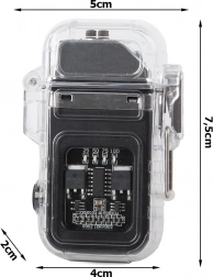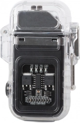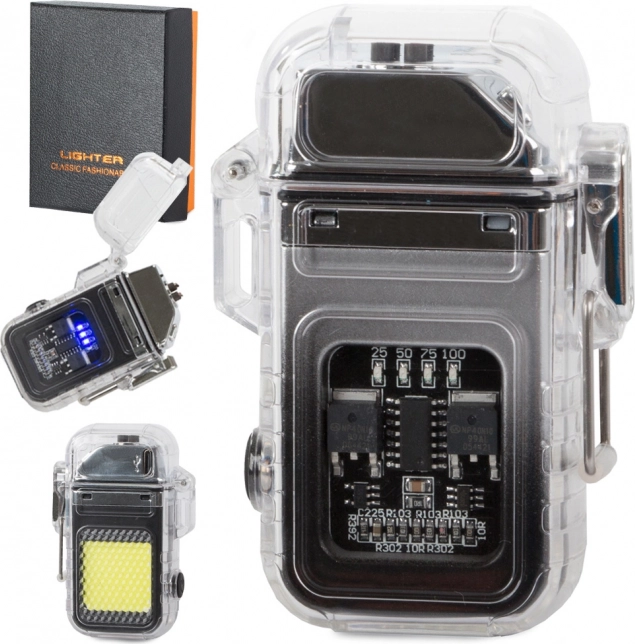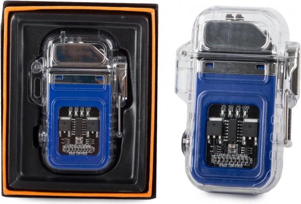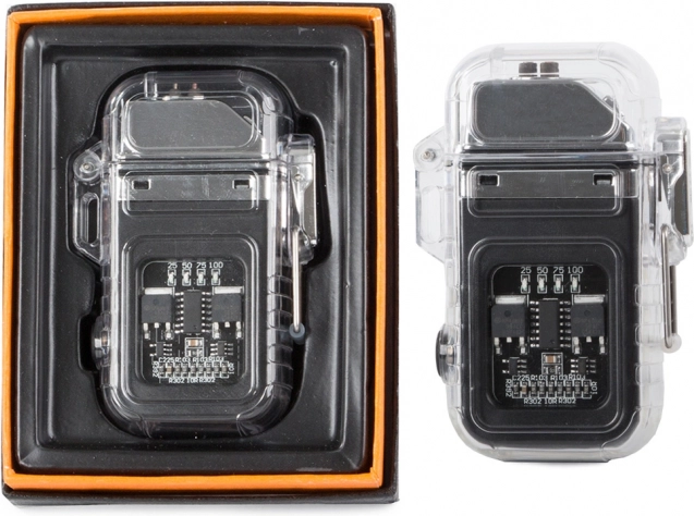 Robusno tijelo s brtvom, gumenim gumbom i poklopcem s kopčom povećava otpornost na vlagu i udarce. Upaljač se jednostavno puni putem micro USB-a (kabel je uključen), a četiri plave LED-ice jasno prikazuju razinu napunjenosti (100/75/50/25 %). U pakiranju je i elegantna kutijica, pa je odličan i kao poklon.