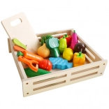 Drvena set kutija s voćem i povrćem za rezanje u sandučiću, 34 dijela