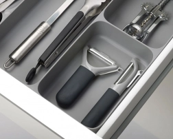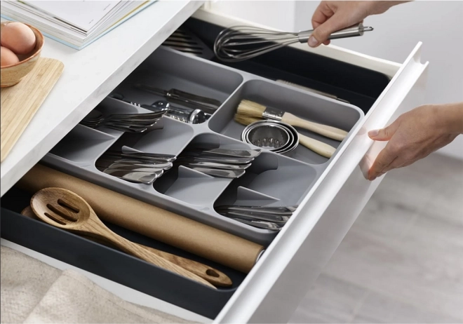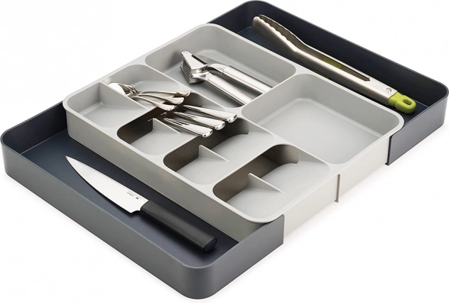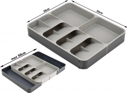 Organizator za kuhinjsku ladicu je dizajniran kako bi maksimizirao prostor i osigurao pregledno uređenje vašeg pribora i kuhinjskih alata. Zahvaljujući svojoj proširivoj konstrukciji prilagodit će se različitim veličinama ladica.