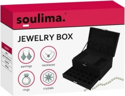 Otkrijte promišljenu organizaciju nakita u jednoj kompaktnoj kutiji. Kutija za nakit SOULIMA nudi kukice za lančiće, mjesta za prstenje, džep s gumicom i prostranu ladicu. Zahvaljujući zaključavanju ključem, vaše su dragocjenosti uvijek sigurno pohranjene i na dohvat ruke. Bezvremenski dizajn sa srebrnim detaljima savršeno se uklapa na toaletni stolić i u garderobu.