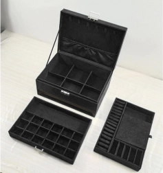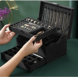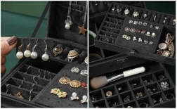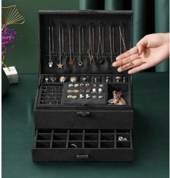 Višerazinsko unutarnje raspoređenje: kukice za lančiće, mjesta za prstenje i naušnice, veliki i uski pretinci te ladica. Sve ima svoje mjesto i odmah je pri ruci.