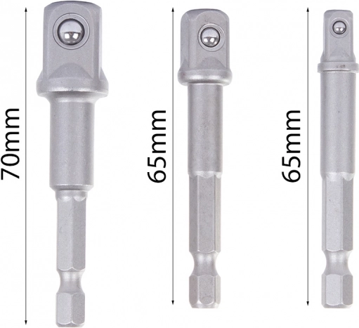 Set sadrži tri redukcije izrađene od izdržljivog čelika, što jamči njihov dug vijek trajanja. Redukcije omogućuju korištenje odvijača s nastavcima različitih dimenzija.