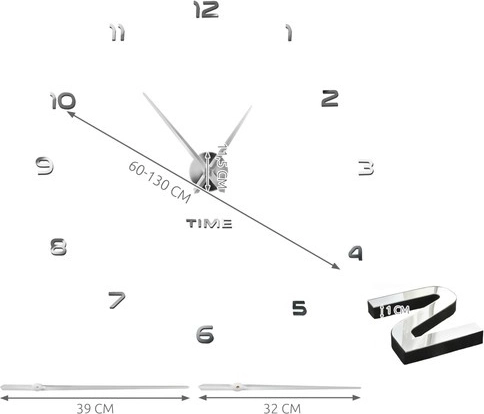 Srebrni 3D brojevi daju satu moderan stil koji se ističe u svakoj prostoriji.
