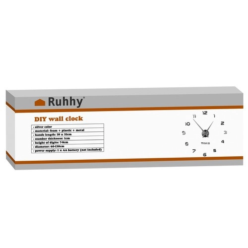 Zahvaljujući tihom mehanizmu s kontinuiranim hodom, sat ne ometa pri radu ni odmoru. Samoljepljive brojke od EVA pjene čvrsto prijanjaju na većinu glatkih površina, a poseban papirnati predložak olakšava precizno označavanje kruga. Dugačke, elegantne kazaljke u srebrnoj boji naglašavaju čisti dizajn.