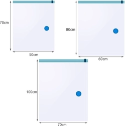 Predstavljamo univerzalan i praktičan set vakuumskih vreća za pohranu prikladan za kućno skladištenje i putovanja. Ove vreće pomažu vam organizirati prostor smanjujući volumen pohranjenih stvari do 80%. Mogu se ponovno koristiti i pružaju visok stupanj zaštite protiv prašine, vlage i moljaca.