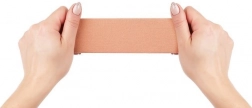 Dijelovi trake lako se lijepe na suhu kožu bez krema, nenametljiva je i lako se kombinira s odjećom.