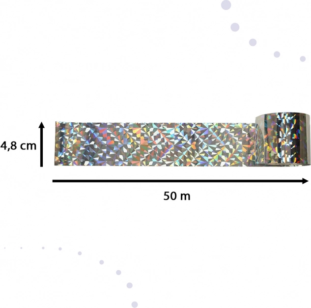 Odvraćajuća holografska traka je dizajnirana za jednostavno korištenje i maksimizaciju učinkovitosti u borbi protiv ptica. Zahvaljujući snažnoj reflektivnoj sposobnosti i zvučnome efektu na vjetru, ptice brzo napuštaju vaše vrtove ili balkone.