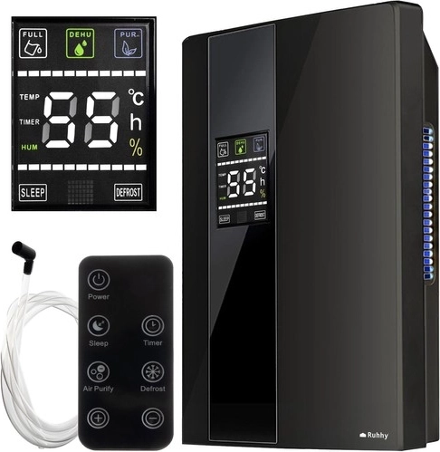 SPECIFIKACIJE -higrometar: da; higrostat: da; termometar: da; lako čitljiv pozadinski osvijetljeni LCD zaslon: da; timer: 1-24 h; funkcija SLEEP: da; funkcija DEFROST: da; daljinsko upravljanje: Pogodan za: 1. prostoriju: max. 30m2; razina buke: 40db; potrošnja: 90W; automatsko gašenje kada je spremnik pun: da; pogodan za: 1: Masa: 1,75 kg; masa s pakiranjem: 1,5 m: 2,22 kg.