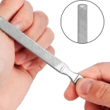 Teksturirana rašpica oblikuje i zaglađuje rubove, potiskivač kožice i elevator osiguravaju precizno dovršavanje manikure i pedikure.