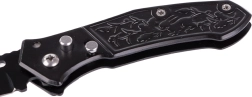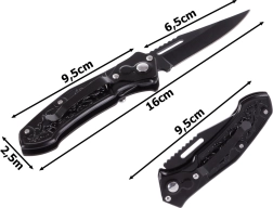 Ovaj taktički sklopivi nož idealan je suputnik za kampiranje, planinarenje, logorovanje i svakodnevno nošenje. Čvrsta čelična oštrica osigurava pouzdan rez, dok kočnica oštrice pruža sigurnost pri prenošenju i upotrebi. Ukrašena drška ne samo da odlično izgleda, već i izvrsno leži u ruci.