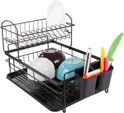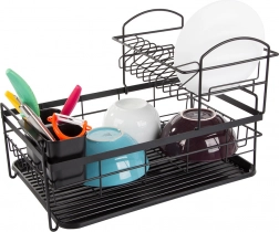 Dvoslojna konstrukcija sušilice za posuđe maksimizira prostor za sušenje. Gornja razina prima do 11 tanjura, dok donji dio nudi dovoljno mjesta za šalice i zdjele. Osim toga, opremljena je odvojivim spremnikom za pribor koji se lako može premjestiti prema vašim potrebama.