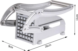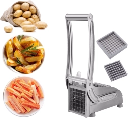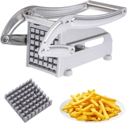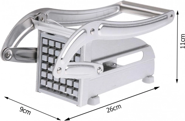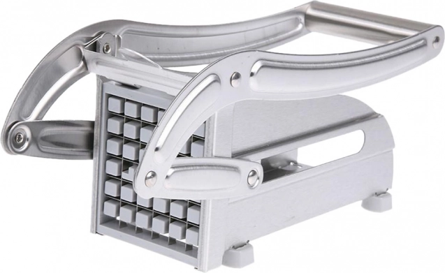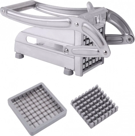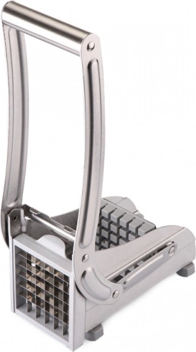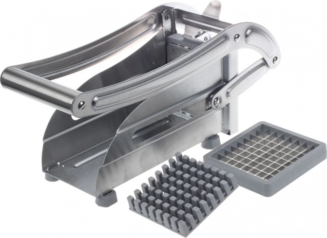 Ovim rezačem krumpire ćete u trenu pretvoriti u jednolike krumpiriće. Dovoljno je umetnuti krumpir i čvrsto pritisnuti – oštre čelične oštrice glatko će ga narezati na jednake komade. Priložene dvoje izmjenjive oštrice omogućuju odabir između tanjih i debljih krumpirića, prema ukusu.