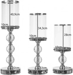Uljepšajte svoj dom elegantnim setom od 3 svijećnjaka Glamour. Svaki svijećnjak izrađen je od kombinacije metala i stakla, što jamči visoku kvalitetu i estetiku.