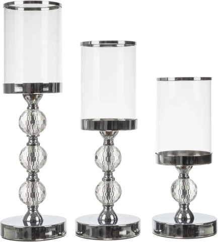 Set od 3 elegantna svijećnjaka Glamour pruža stilski način osvjetljenja za sve prigode. Dizajn s kristalnim detaljima i različitim visinama čini ove svijećnjake iznimnim dodatkom vašem interijeru.