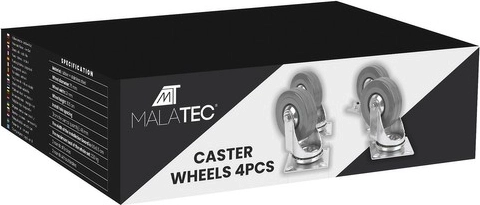 Set industrijskih okretišta kotača marke Malatec kombinira praktičnu funkcionalnost s velikom nosivošću do 220 kg. Kotači su izrađeni od izdržljivog željeza s gumenom površinom koja pruža tihi i siguran pokret. Dva od ovih kotača opremljena su integriranim kočnicama, koje omogućuju sigurno zaustavljanje pokreta na mjestu.
